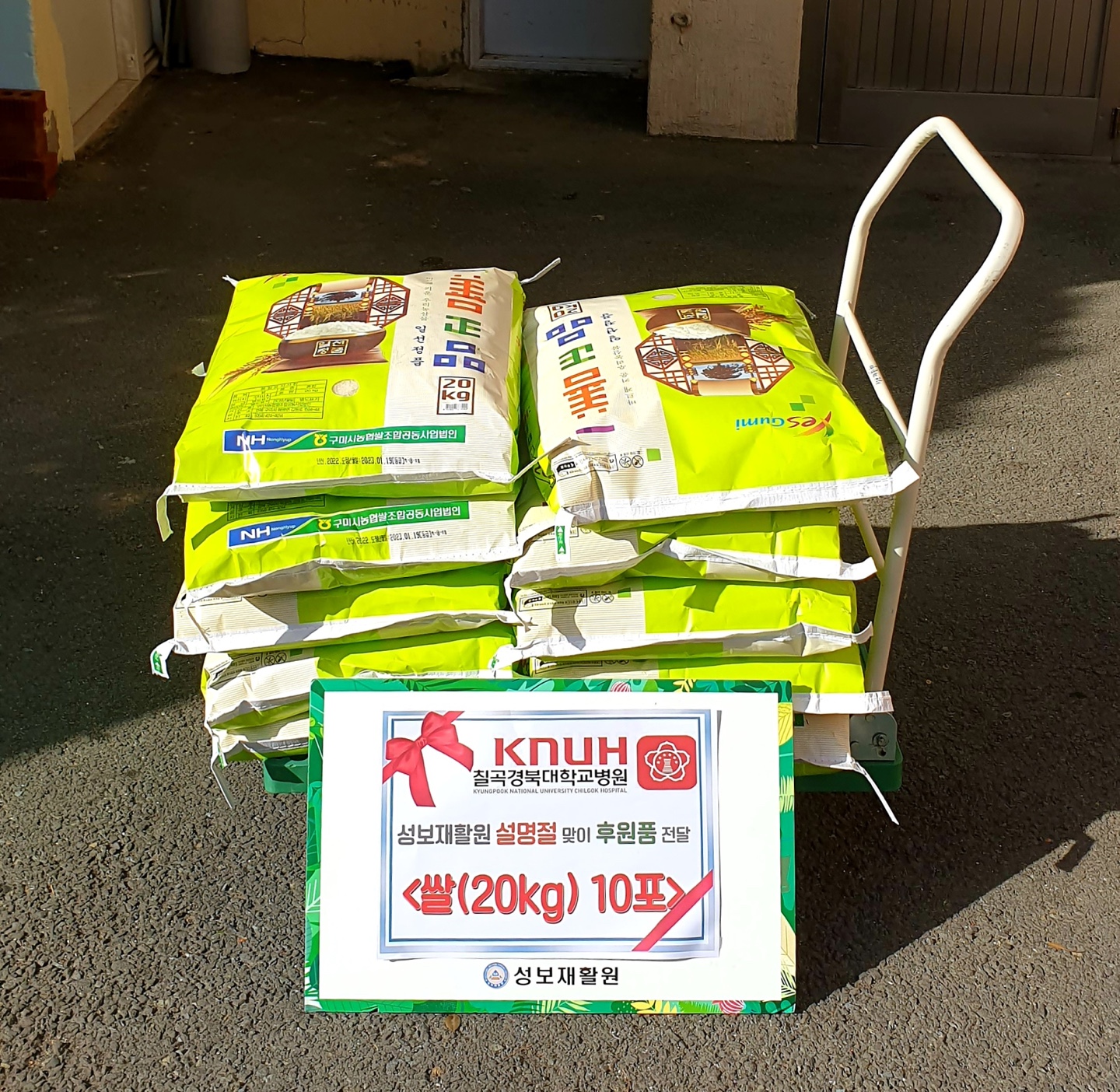 2023년 설명절 맞이 칠곡경북대학교 방문 후원 담당자 0 1293 2023.01.20 18:10 매년 성보재활원 이용자들에게 맛있는 쌀을 후원해주시는 칠곡경북대학교병원에서올해도 잊지 않으시고 방문 후원을 해주셨습니다.항상 명절 때 마다 찾아주셔서 감사드립니다.새해 복 많이 받으십시오. ♥- 일 시 : 2023년 1월 20일- 후원품 : 쌀(20kg) 10포