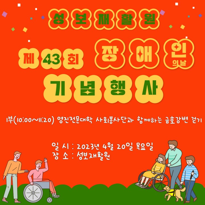 2023년 4월 20일 제43회 장애인의 날을 맞이하여서 성보재활원에서 기념 행사를 진행하였습니다.