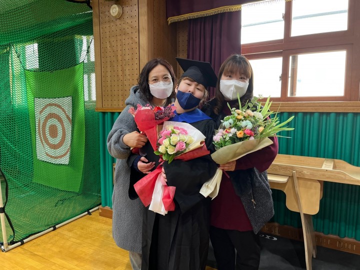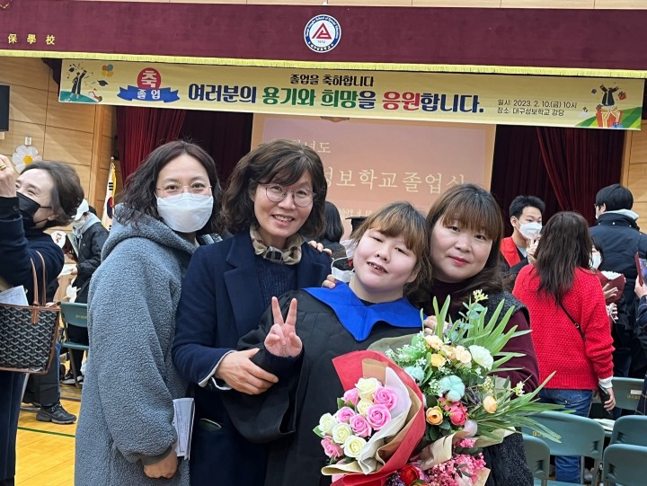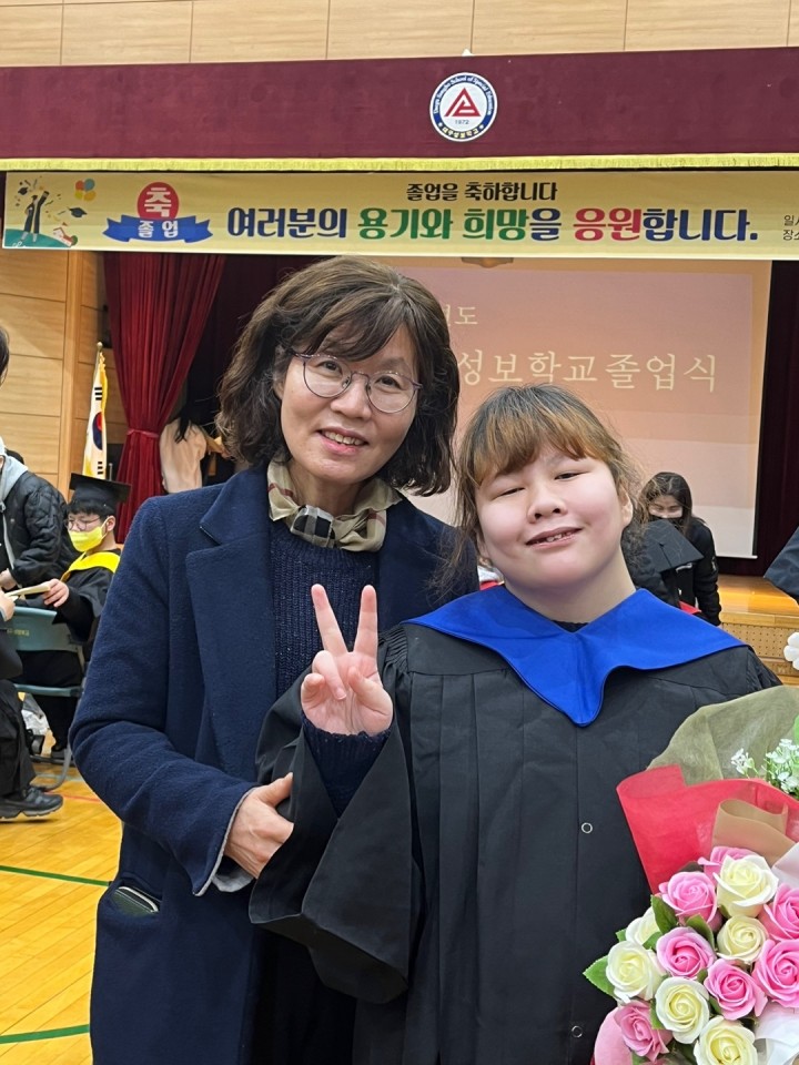 2023년 성보학교 고등부 김하영이용자 졸업식 담당자 0 2271 2023.02.13 10:50 사랑동 김하영이용자가 성보학교 고등부를 졸업했습니다.나날이 빛나는 20대의 꽃길이 펄쳐지길 바랍니다.졸업을 축하드립니다.- 일 시 : 2023년 2월 10일 금요일- 졸업자 : 김하영이용자- 참석자 : 이금희 원장, 김수진팀장, 홍순덕&홍해경 생활재활교사