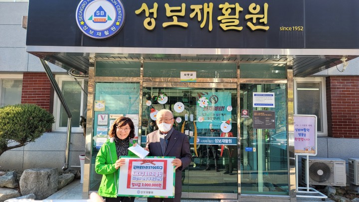 2022년 새대구로타리클럽 방문 후원 담당자 0 1860 2023.01.09 13:13 새대구로타리클럽 회장님 외 회원분들께서 연맞을 맞이하여서 성보재활원을 방문하셔서 따뜻한 나눔에 동참해주셨습니다.후원해주신 후원금은 성보재활원 이용자들을 위해서 투명하게 사용하도록 하겠습니다.감사드립니다.- 일 시 : 2022년 12월 2일- 장 소 : 성보재활원- 후 원 : 일시금 3,000,000원