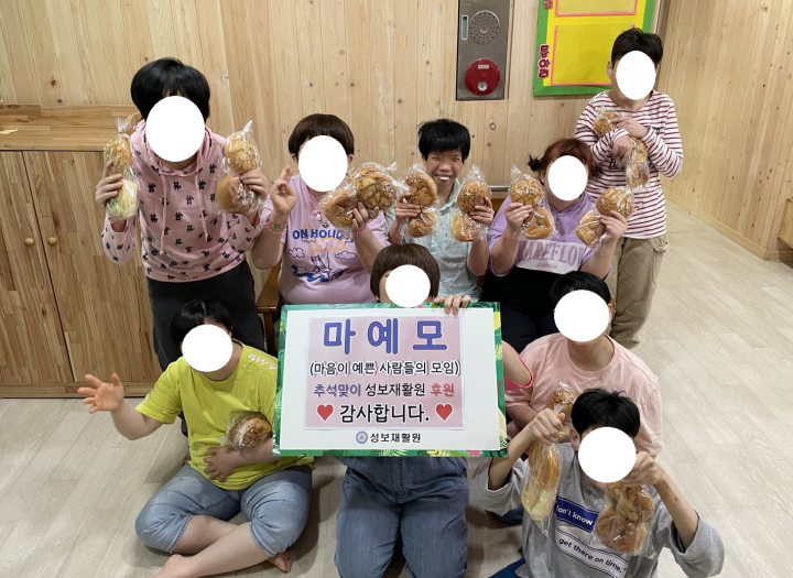 2022년 마예모(마음이 예쁜 사람들의 모임) 추석맞이 방문 후원 담당자 0 1871 2022.10.07 14:44 마예모(마음이 예쁜 사람들의 모임) 장태호 회장님께서성보재활원 이용자들을 위해서 맛있는 수제 빵을 후원해주셨습니다.감사드립니다.- 일 시 : 2022년 9월 7일- 후원품 : 수제 소보루빵+팥빵 세트 338개