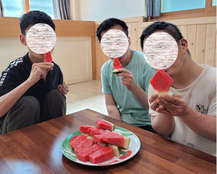 2022년 초복맞이 김태군&이강호&김점숙 후원자 수박 배달 후원 담당자 0 2118 2022.08.04 17:21 무더위를 날려버릴만큼의 시원하고 달달한 수박!초복을 맞이하여 김태군&이강호&김점숙 후원자님들께서 맛있는 수박을 후원해주셨습니다.감사드립니다. ^^- 일 시 : 2022년 7월 16일- 후원품 : 수박 50통
