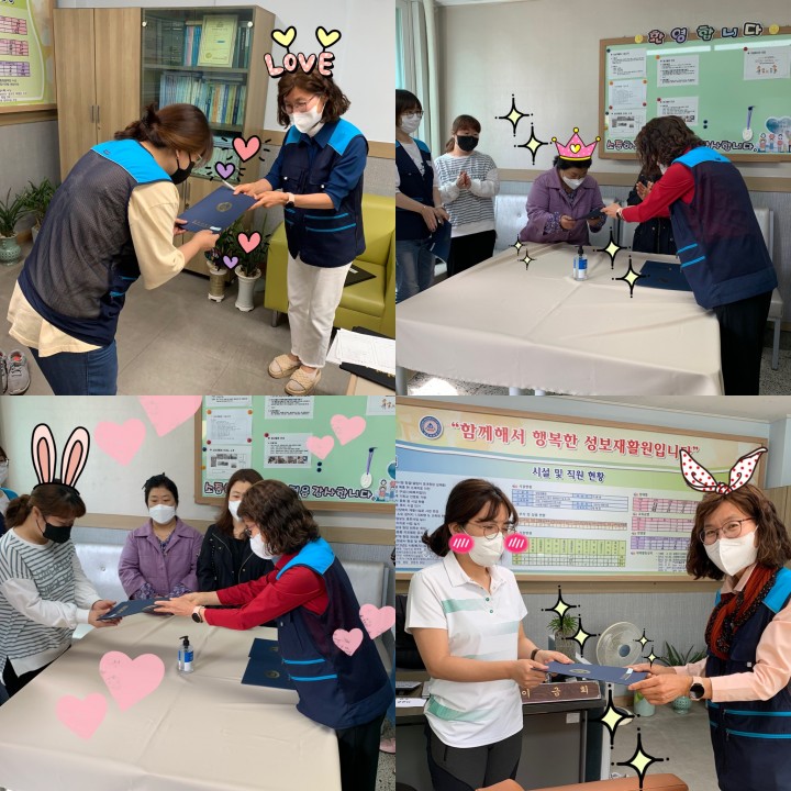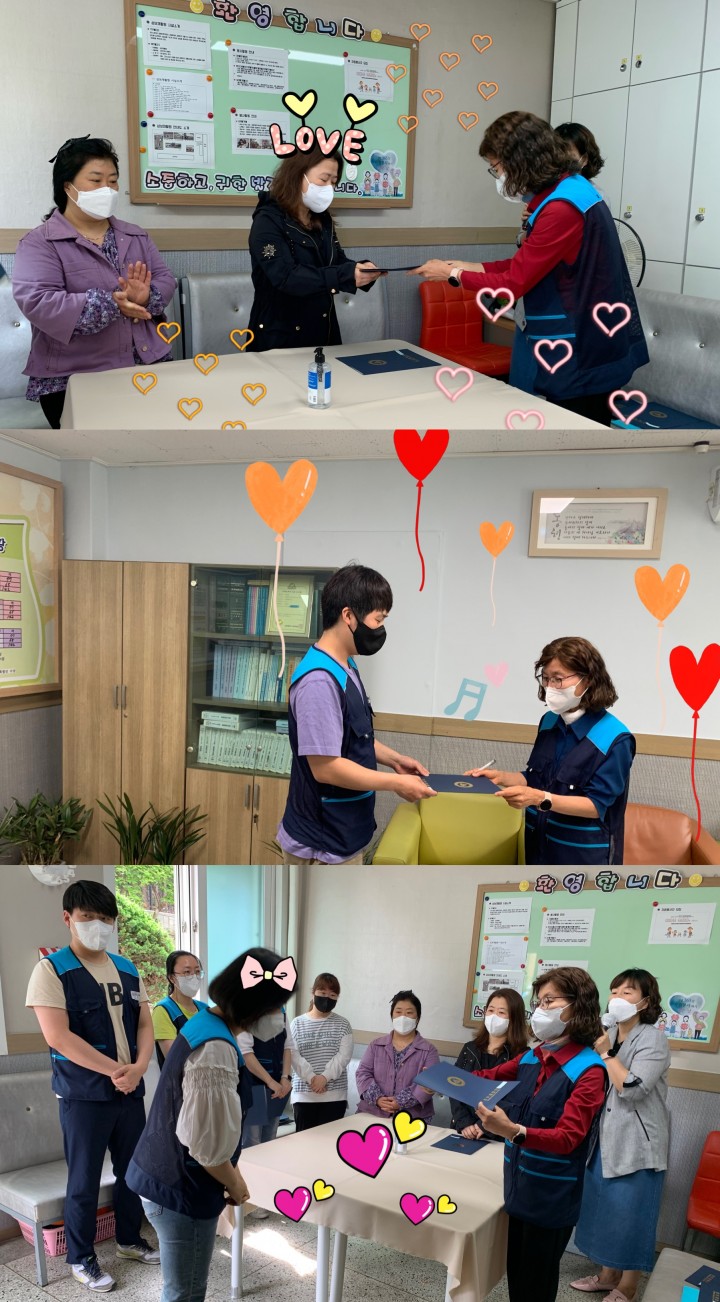 2022년 생활관 팀장, 부팀장 임용장 수여식 담당자 0 2598 2022.05.19 11:40 각 생활관의 팀장, 부팀장 임용장 수여식을 진행하였습니다.임용되신 팀장, 부팀장님들 축하드립니다. 짝짝짝- 일 시 : 2022년 5월 10일- 장 소 : 자원봉사자실- 진행자 : 임소영 사무국장- 대상자 : 누가의집 팀장 : 이영주, 부팀장 : 김호정믿음동 팀장 : 박옥현. 부팀장 : 박지혜사랑동 팀장 : 김수진, 부팀장 : 서영희소망동 팀장 : 백현미, 부팀장 : 신화순화평동 팀장 : 이경미, 부팀장 : 박재균사회재활팀 체험홈 팀장 : 김지나