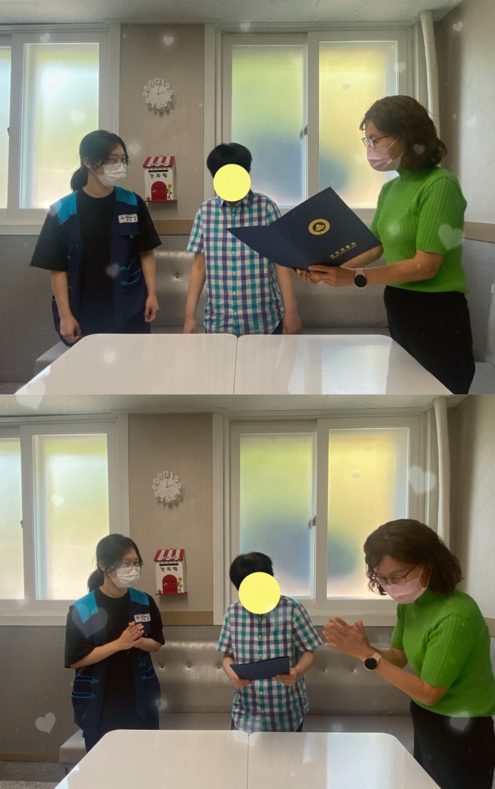 2022년 성보재활원 장애인 인권콘테스트 최우수상 사랑동 시상식 담당자 0 2604 2022.06.08 18:51 올 해도 어김없이 성보재활원 장애인 인권 콘테스트 를 진행하였습니다.정말 치열한 경쟁으로 사랑동에서 최우수상을 차지하여서 신세계 백화점 상품권 100,000원을 전달하였습니다.뜻깊고 참신한 아이디어로 참여해주신 각 생활관 및 부서에서도 모두 고생많으셨습니다.- 일 시 : 2022년 6월 3일 금요일- 장 소 : 성보재활원 자원봉사자실- 진행자 : 임소영 사무국장