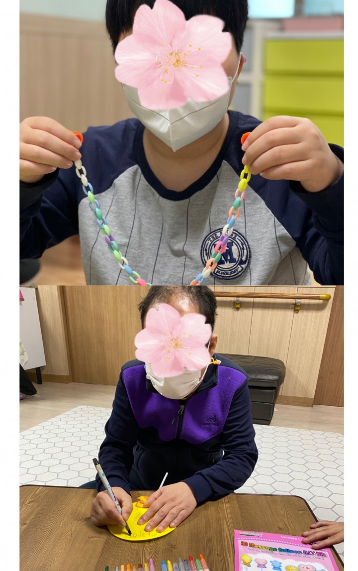 마스크 스트랩 만들기, 색칠 종이 풍선 만들기, 하나님 사랑을 주제로 한 꾸미기 활동 등 다양한 활동을 하며 직원도 이용자도 모두 하나가 되는 시간이었습니다.