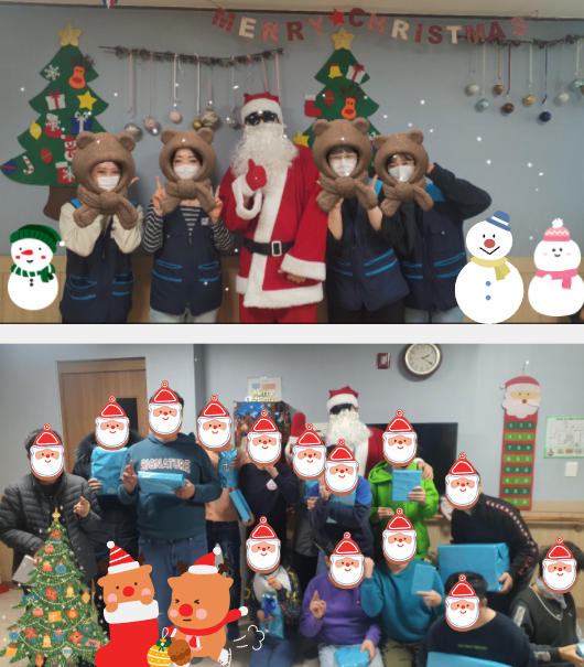 2021년 크리스마스 행사(1) 담당자 0 2639 2021.12.27 09:46 올 해도 어김없이 성보재활원에 산타할아버지가 나타났어요 ~ ♥크리스마스 이브를 맞이하여 성보재활원에서 크리스마스 자체 행사를 진행하였습니다.산타할아버지를 보고 함박웃음을 짓는 성보재활원 이용자들을 보니, 동심으로 돌아간 것 같았습니다.산타할아버지 대역을 해주신 김호정, 박재균 선생님 고생하셨습니다.모두들 Merry Christmas- 일 시 : 2021년 12월 24일 (금)- 장 소 : 각 생활관- 협조자 : 사회재활팀, 생활재활팀