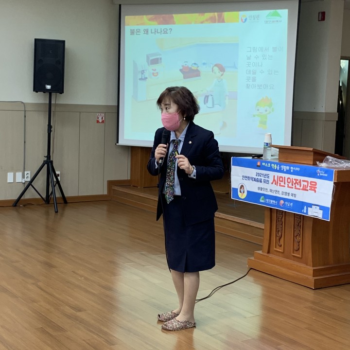 2021년 화재예방 안전교육 담당자 0 2364 2021.11.05 13:43 외부강사를 초청하여서 화재예방 안전관리 교육을 실시하였습니다.코로나19로 인하여 각 생활관에 소수인원들만 모여서 교육을 실시하였습니다.- 일 시 : 2021년 11월 3일 (수)- 장 소 : 성보재활원 강당- 참여자 : 성보재활원 이용자 및 직원