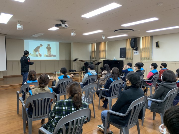 2021년 심폐소생술 종사자 교육 담당자 0 2309 2021.12.03 13:57 외부 강사를 초청하여서 3일을 거쳐서 성보재활원 종사자 대상으로 심폐소생술 교육을 실시하였습니다.긴급 시에 잘 활용할 수 있는 유익한 교육이었습니다.직원 여러분들 고생하셨습니다.- 일 시 : 2021년 11월 22일, 24일, 26일- 장 소 : 성보재활원 강당- 참여자 : 성보재활원 종사자