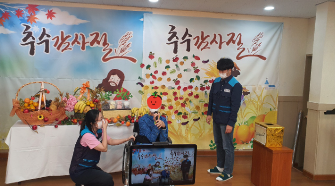 2021년 추수감사절 행사 담당자 0 2835 2021.12.03 14:02 11월을 맞이하여 원내에서 추수감사절 행사를 진행하였습니다.이용자, 직원들 모두 감사한 일에 대하여 생각도 해보고 감사한 떡과 과일도 먹으며 즐거운 시간을 가졌습니다.코로나19로 인하여 실시간 유튜브 방송으로 진행하였지만 뜻깊었던 행사였습니다.이용자, 직원분들 고생하셨습니다.- 일 시 : 2021년 11월 17일 (수)- 장 소 : 성보재활원 강당- 진행자 : 사회재활팀 정현석 주임- 협조자 : 사회재활팀, 생활재활팀