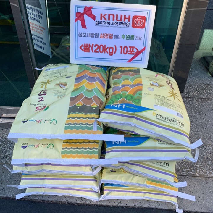 칠곡경북대병원에서 설명절 맞이 후원품 쌀을 전달해주셨습니다.