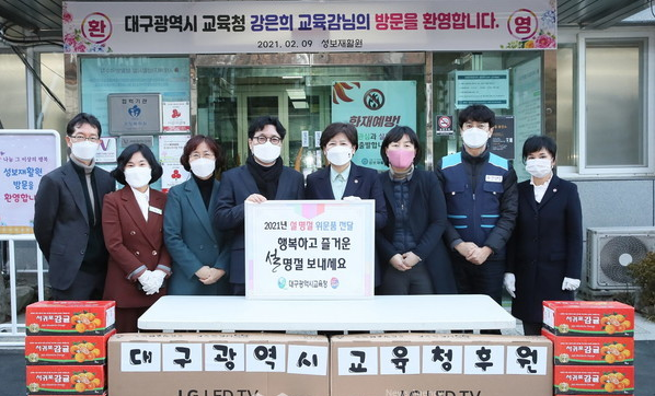 설명절을 맞이하여 대구광역시 강은희 교육감님과 교육청 관계자분들이 성보재활원을 방문하셨습니다. 이용자들이 선호하는 스마트 TV와 무선청소기 등을 후원해주셨습니다. 감사드립니다 ^_^♡