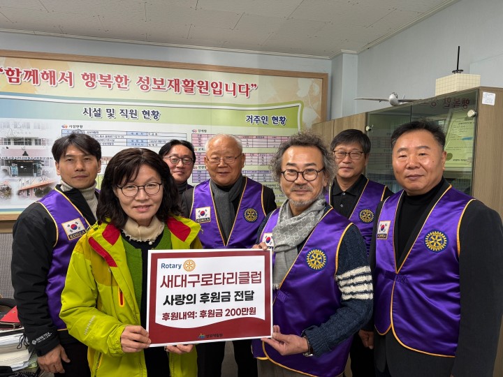 성보재활원에 꾸준한 지원을 아끼지 않는 새대구로타리클럽의 박종한 회장님과 김태군 전 회장님, 그리고 다른 후원자분들이 연말을 맞아 방문해 주셨습니다. 새대구로타리클럽은 성보재활원 이용자들에게 필요한 생필품과 가전제품 등을 제공하는 소중한 후원 및 봉사 단체입니다. 이러한 후원자들의 따뜻한 마음은 성보재활원 이용자들에게 큰 힘이 되고 있습니다.